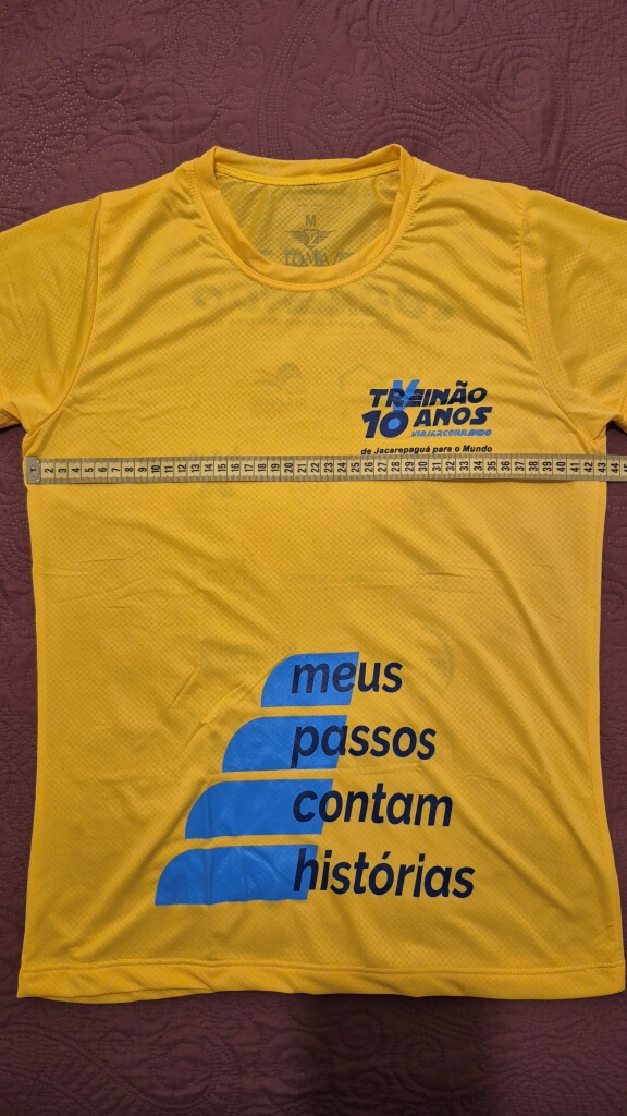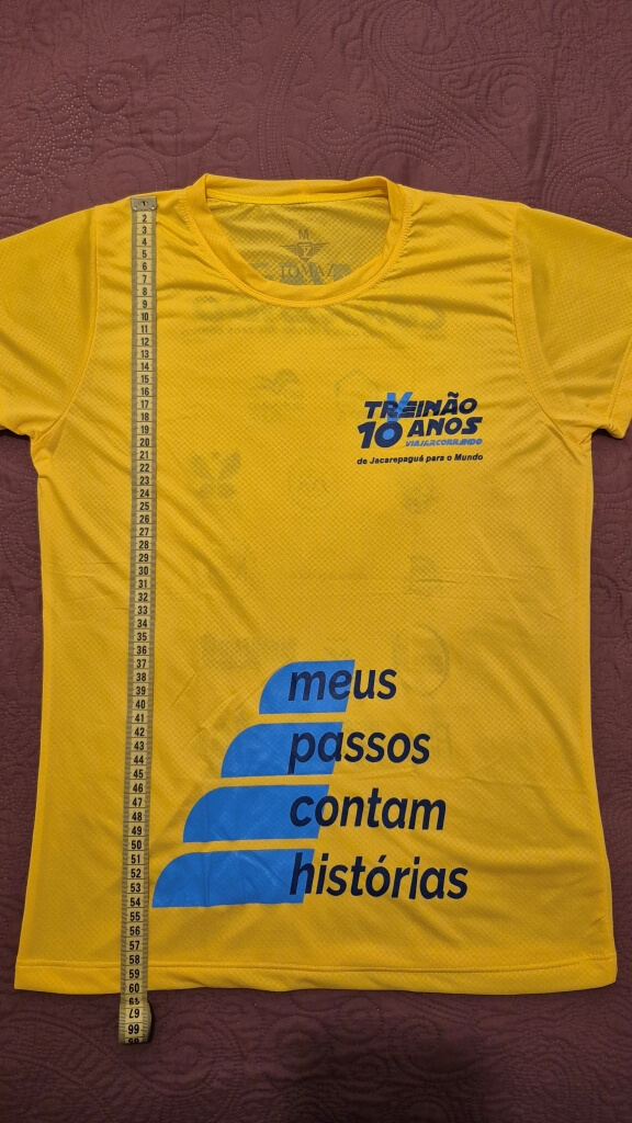 Camiseta comemorativa (modelo feminino tamanho M e unissex, tecido tecnológico com proteção UV); VERIFIQUE A GRADE DE TAMANHOS.