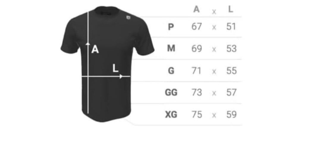 - Escolha seu tamanho de camiseta (consulte a grade de medidas, pois trocas podem não ser possíveis, caso o tamanho desejado esgote);